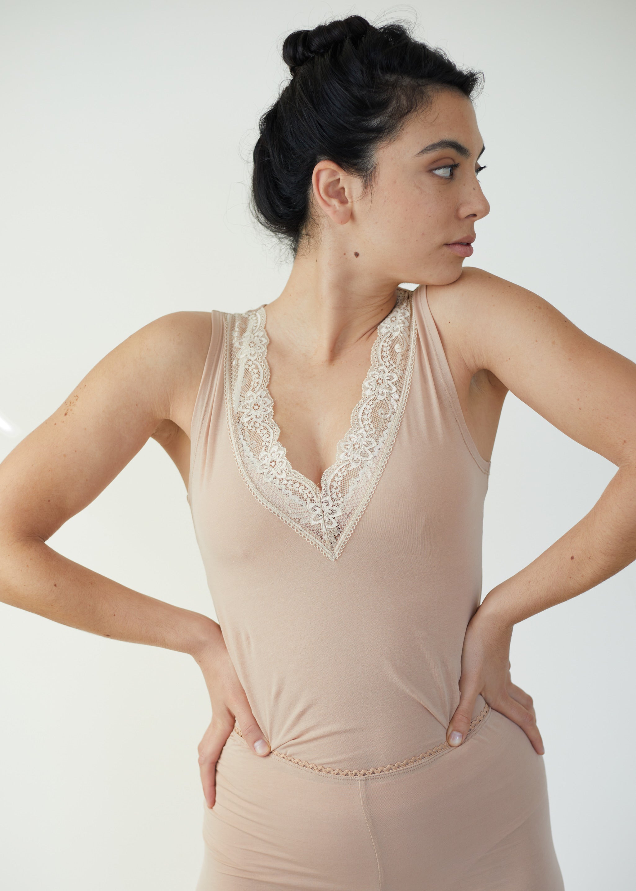 במחשוף וי עמוק מעוטר בתחרה אירופאית עשירה, זה פשוט הולך להיות הבייסיק הכי טוב שלך, לכל עונות השנה.