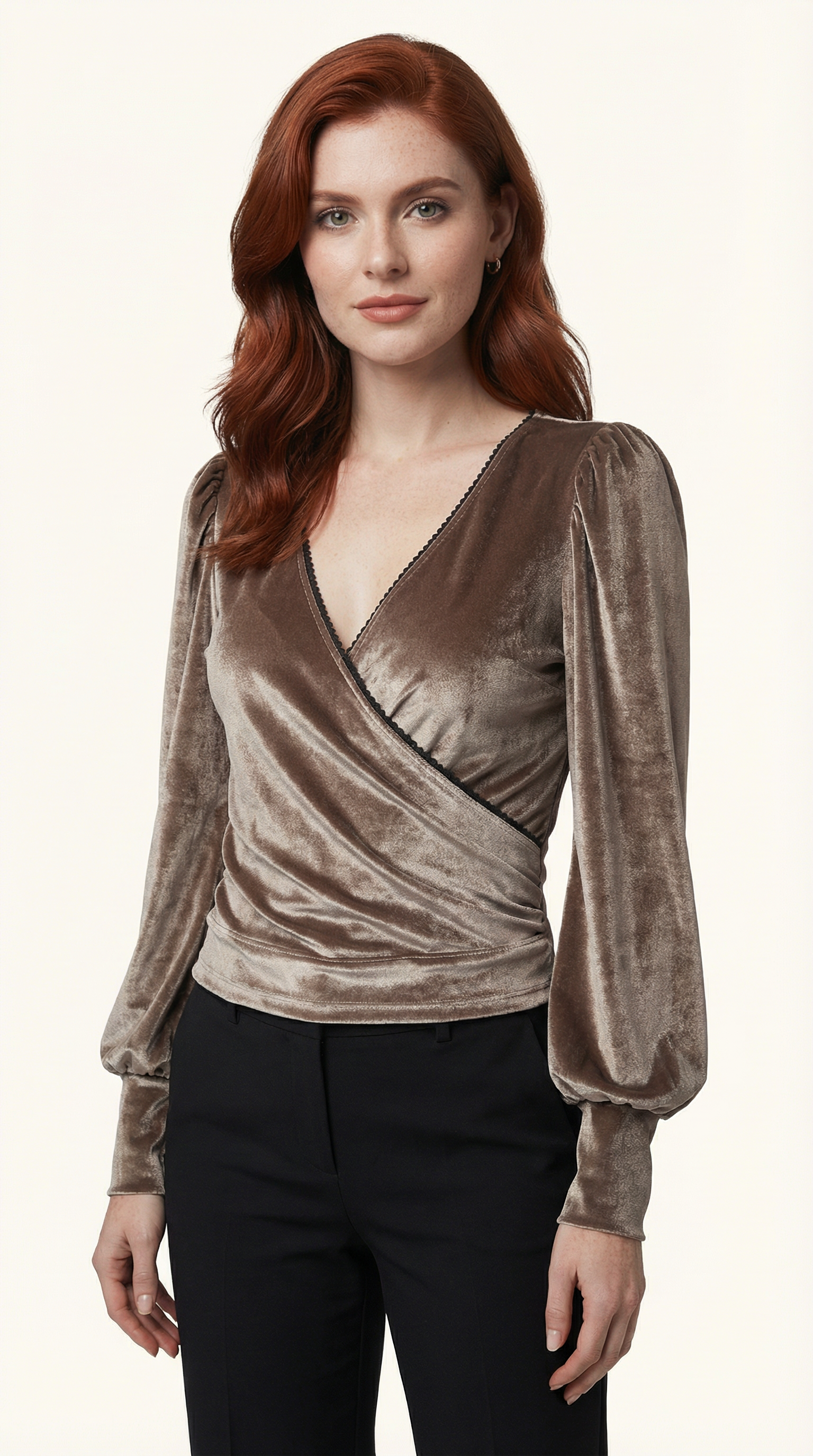 משהו בין חולצת מעטפת קטיפתית לבין עליונית חגיגית שתרים לך כל לוק