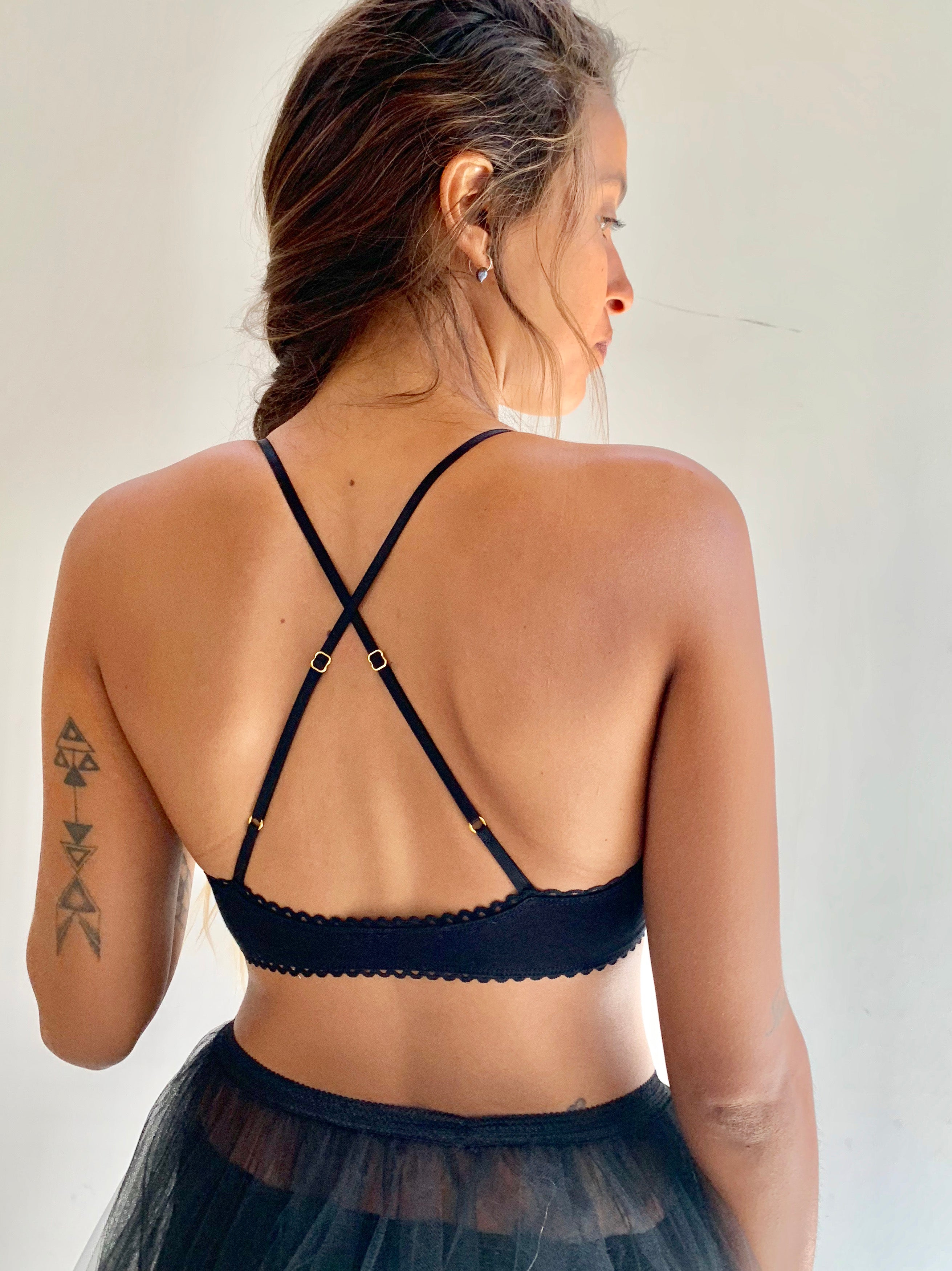 - סרט גומי לולאות מעטר את החזיה מתחת ומסביב לחזה, מוסיף יופי ואקסטרה תמיכה