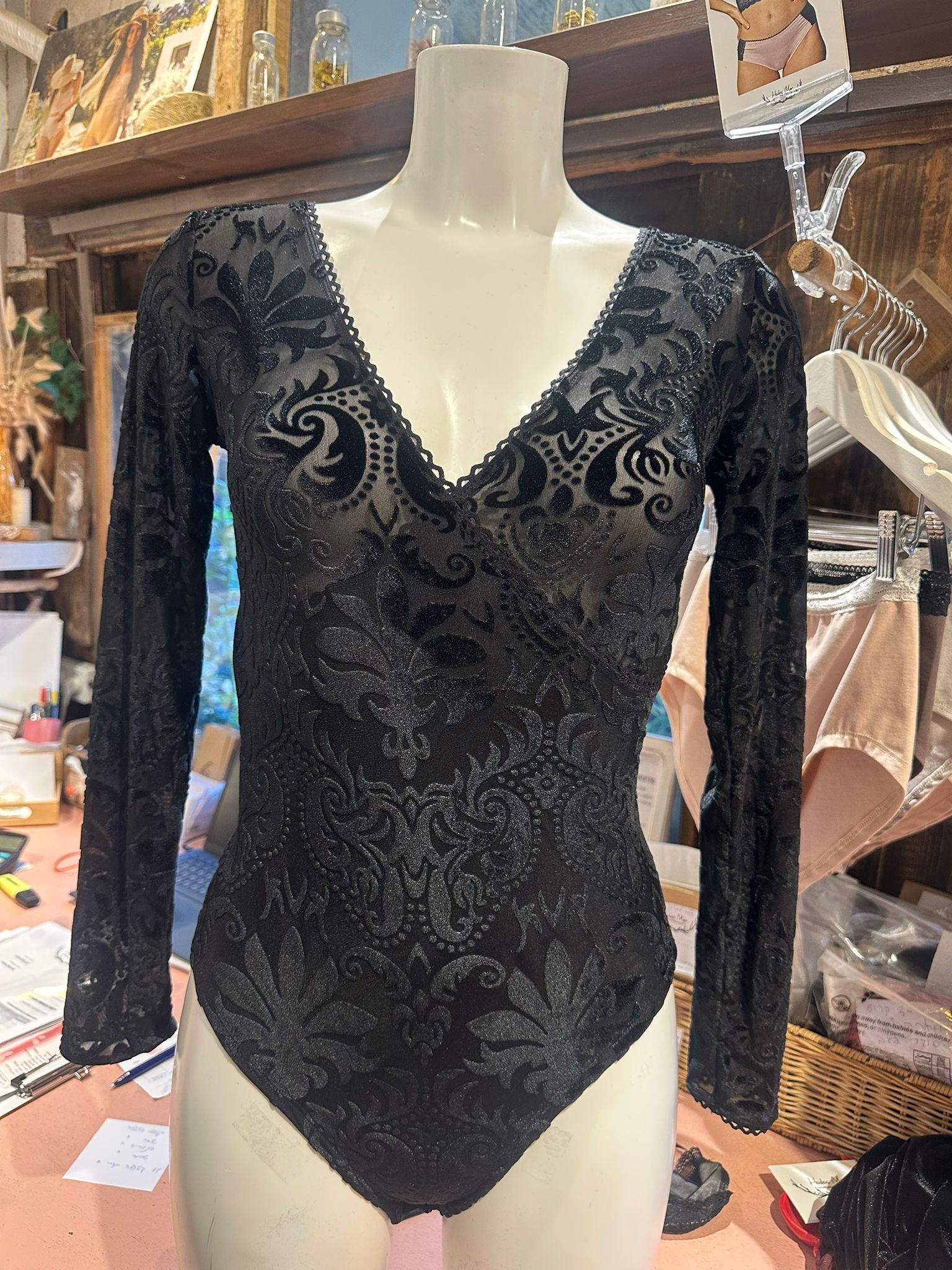 גומי רך ומעוצב מעטר את בגד הגוף מסביב לכל המחשוף ובסוף השרוול